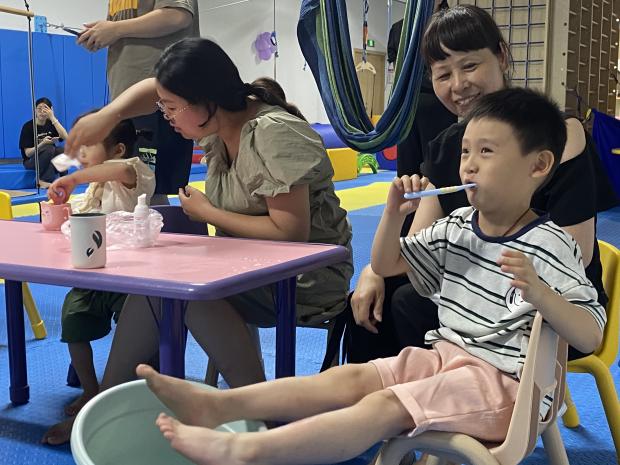 近日,王晓峰牙科连锁受励童儿童发展中心邀请,在中心的康复基地进行了一场孤独症儿童口腔健康活动。